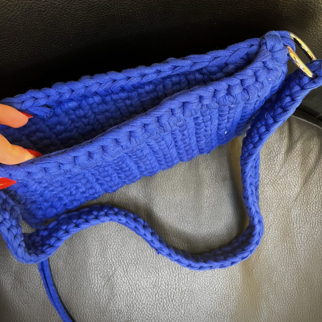 Borse interamente fatti a mano ad uncinetto, fettuccia cotone e licra, forme e colori diversi